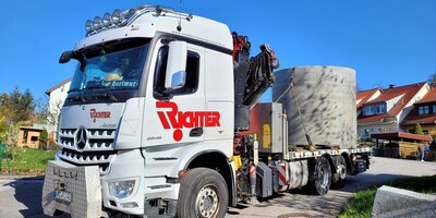 LKW liefert Betonblock